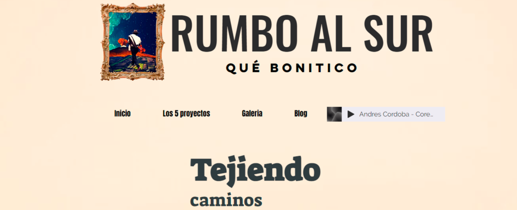 La página resalta cinco de estos elementos en el mismo número de pestañas. Tejiendo Caminos habla de la importancia de la ruana de lana en la región a través de videos y archivos sonoros; el video documental Pan para mi café habla del pan de maíz, su proceso de elaboración y la forma como las familias se unen en torno a este alimento a la hora del desayuno; 7.8 Hz recrea paisajes sonoros de la región y presenta un video documental sobre los luteros y su oficio en este departamento; el video Pegasur habla de un artista que interviene el espacio público para ofrecer una mirada alternativa del patrimonio; por último, la página presenta el proyecto El sur es nuestro norte compuesto de una galería de contenido multimedia que permite conocer más del patrimonio de Nariño.